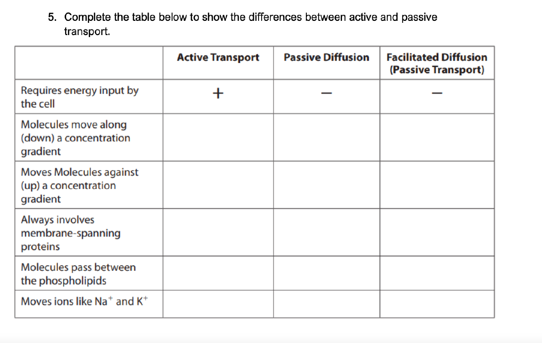 5 Points Of Difference Between Active Transport And Passive Transport Brainly In
